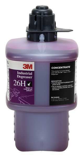 Description Industrial Degreaser, Chemical Flow Rate Low, Label Number 26H, Label Color Coding Purple, Cleaner Form Liquid, Container Size 2 L, Container Type Bottle, Fits Dispenser Series Twist 'n Fill, pH Level 11.5, pH Value Alkaline, Primary Chemical None, Recommended Dilution 1:74, Concentrated, EPA Registered Yes, Properties Low Foam, Flash Point 147 Degrees F, VOC Content 35 Percent, Fragrance Unscented, Standards OSHA Hazard Communications Standard, Safety Data Sheets, EPA and 29 CFR 1910.1200