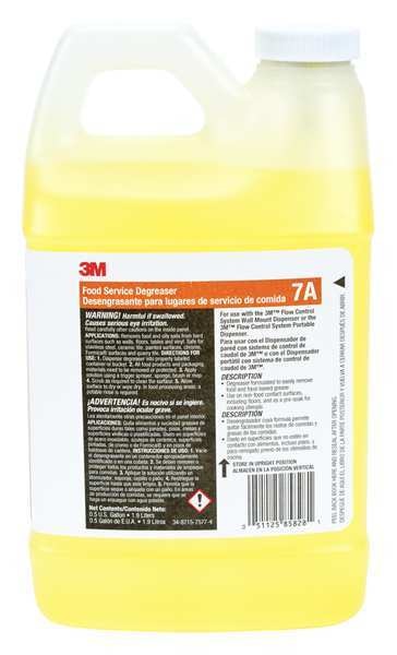 Description Food Service Degreaser, Label Number 7A, Label Color Coding Orange, Cleaner Form Liquid, Container Size 0.5 gal, Container Type Bottle, Fits Dispenser Series Flow Control, pH Level 9.2, pH Value Alkaline, Primary Chemical None, Recommended Dilution 1:244, Concentrated, EPA Registered Yes, Flash Point 212 Degrees F, VOC Content 0 Percent, Fragrance Unscented, Standards OSHA Hazard Communications Standard, Safety Data Sheets, EPA and 29 CFR 1910.1200