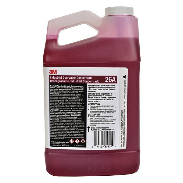 Description Industrial Degreaser, Label Number 26A, Label Color Coding Purple, Cleaner Form Liquid, Container Size 0.5 gal, Container Type Bottle, Fits Dispenser Series Flow Control, pH Level 11.5, pH Value Alkaline, Primary Chemical None, Recommended Dilution 1:147, Concentrated, EPA Registered Yes, Properties Low Foam, Flash Point 147 Degrees F, VOC Content 0 Percent, Fragrance Unscented, Standards OSHA Hazard Communications Standard, Safety Data Sheets, EPA and 29 CFR 1910.1200