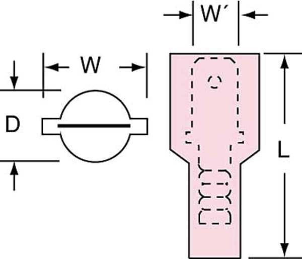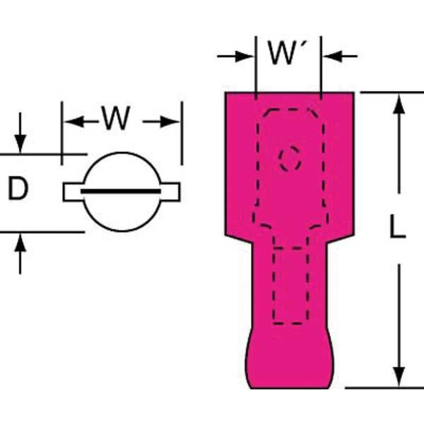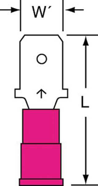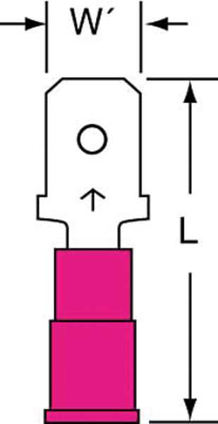 Description Male Disconnect, Insulation Color Red, Terminal Type Male Disconnect, Standards CSA Certified, RoHS Compliant, UL Listed, Insulation Type Nylon, Overall Length 0.87 in, Package Quantity 100
