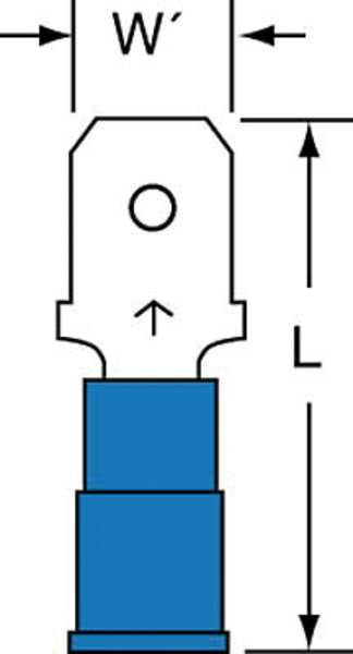 Description Male Disconnect, Insulation Color Blue, Standards CSA Certified, RoHS Compliant, UL Listed, Insulation Type Nylon, Overall Length 0.95 in, Package Quantity 25