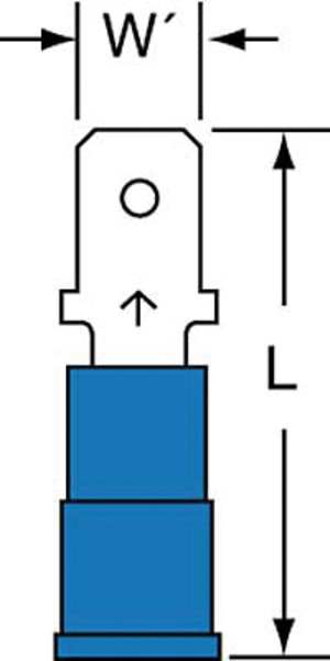Description Male Disconnect, Insulation Color Blue, Terminal Type Male Disconnect, Standards CSA Certified, RoHS Compliant, UL Listed, Insulation Type Nylon, Overall Length 0.95 in, Package Quantity 50