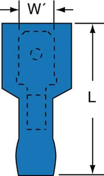Description Male Disconnect, Insulation Color Blue, Terminal Type Male Disconnect, Standards CSA Certified, UL Listed, Insulation Type Vinyl, Overall Length 0.85 in, Package Quantity 100