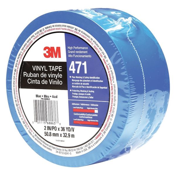 Marking Tape, 2In W, 108 ft. L, BlueSKU G4309033Categories Adhesives, Epoxy & SealantsDescription Floor Marking Tape, Continuous Roll, Solid, Blue, 2 in, 108 ft, 5.2 mil, Vinyl, 3M(TM), Series 471, Legend No Legend, Glow In The Dark No, Retroreflective Grade Non-ReflectivegraingerSKU: 24A650, mscSKU: , zoro_no: G4309033, mongo_id: 65bbe7769a749db82273c794