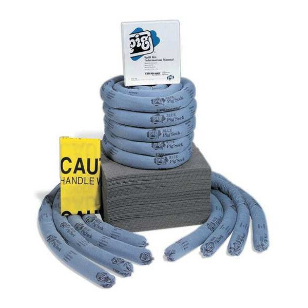$297.49 / eachWeb priceSpill Kit Refill, Universal, Blue/GraySKU G7947511CategoriesDescription Spill Kit Refill, Fluids Absorbed Universal, Volume Absorbed Per Kit 21 gal, Container Type Box, 20 3/4 in W x 25 in L x 16 3/4 in H Container Size, Gray, Filled, Sorbents Included (25) 15 in W x 20 in L Pig Absorbent Mat Pad (MAT203), (4) 17 in W x 21 in L Pig Absorbent Pillow (PIL201), (4) 3 in Dia. x 10 ft L Pig Blue Absorbent Sock (Pig202), Additional Components Included (5) 18 in W x 30 in H Polyethylene Disposal Bags (BAG20-1S), (6) 2 in W x 6 in L Tamper Proof Seal Label (LBL100)graingerSKU: 30RD82, mscSKU: , zoro_no: G7947511, mongo_id: 65bbe81b22d7a989a98d9666