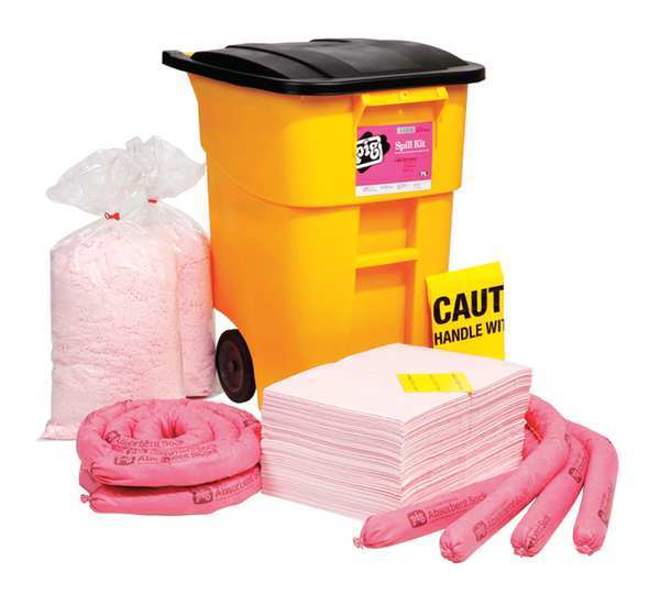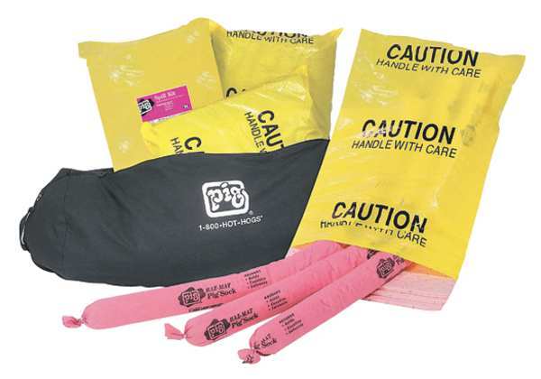 $475.00 / eachWeb priceSpill Kit, Chem/Hazmat, BlackSKU G8028212CategoriesDescription Spill Kit, Fluids Absorbed Acids, Bases, For Use With Chemical or Metal Type Acids, Bases, Volume Absorbed Per Kit 20 gal, Container Type Portable Bag, 25 in W x 48 in L Container Size, Black, Filled, Sorbents Included (12) Ext. Dia. 3 in x 46 in L Pig Harsh Chemical Absorbent Sock (124CR), (48) 15 in W x 20 in L Pig Harsh Chemical Absorbent Mat Pad (MAT301), Additional Components Included (4) Instructions, (8) 18 in W x 30 in H Polyethylene Disposal Bags (BAG20-1S), Canvas Duffel BaggraingerSKU: 30RE70, mscSKU: , zoro_no: G8028212, mongo_id: 65bbe77f3aaddbd5a909ba64
