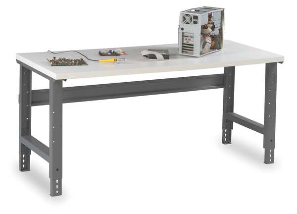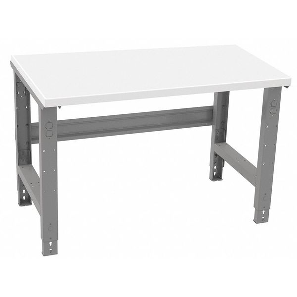 Description Workbench, Height Adjustability Adjustable Height, Top Material Plastic, Assembly Unassembled, Color Gray, Frame Material Steel, Leg Type Straight Leg, Maximum Adjustable Height 36 7/8 in, Minimum Adjustable Height 27 7/8 in, Non-Metal Top Thickness 1 1/2 in, Number of Cabinets 0, Number of Drawers 0, Number of Knockouts 4, Included Components Stringer, Number of Outlets 0, Number of Shelves 0, Overall Depth 30 in, Overall Fixed Height Not Applicable, Overall Load Capacity 2,400 lb