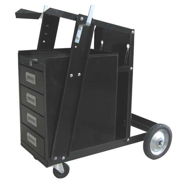 SKU G4625485CategoriesDescription Welding Cart With Drawers, Number of Shelves 1, Shelf Depth 11.4 in, Shelf Width 17.3 in, Number of Cylinders Held 1, Compatible Cylinder Diameter (Maximum) 10 1/16 in, Wheel Type Caster, Compatible Cylinder Diameter (Minimum) 7 in, Compatible Cylinder Type 20 cu ft, Compatible Welder Type Wire Feeders, Container Capacity Partially Assembled, Cylinder Securing Mechanism Locking Iron Chain, Drawer Depth 13 in, Drawer Height 2.9 in, Drawer Width 8.6 in, Features Tilted Top Shelf, Frame Color BlackgraingerSKU: 19D984, mscSKU: , zoro_no: G4625485, mongo_id: 65bbee11526e052139aeb25e