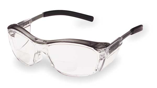 Nuvo⢠Reader Safety Glasses, Clear Lens, Gray Frame, +2.0 Diopter