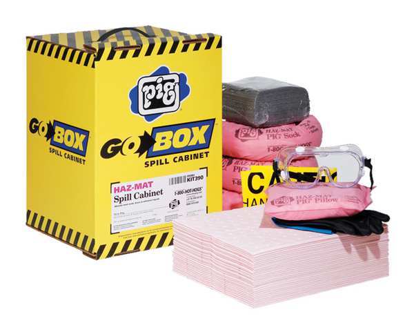 $635.00 / eachWeb priceSpill Kit, Chem/Hazmat, YellowSKU G8013223CategoriesDescription Spill Kit, Fluids Absorbed Acids, Bases, Volume Absorbed Per Kit 10 gal, Container Type Wall Cabinet, 12 3/4 in W x 20 in L x 30.0625 in H Container Size, Yellow, Filled, Sorbents Included (10) 8 in W x 8 in L x 1 in H Pig HazMat Chemical Absorbent Pillow in Dispenser Box (PIL302), (40) 12 1/4 in W x 13 in L Polypropylene Wipers, (75) 10 in W x 13 in L Pig HazMat Chemical Absorbent Handy Pad in Dispenser Box (MAT351)graingerSKU: 30RE63, mscSKU: , zoro_no: G8013223, mongo_id: 65bbe99f22d7a989a9968dd4