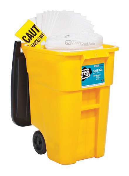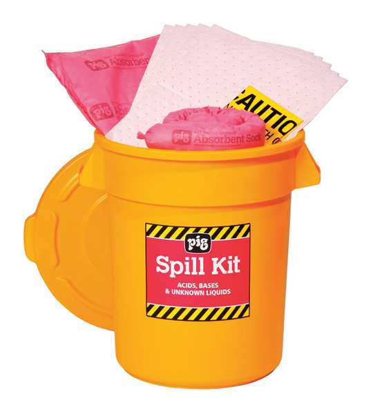 $509.99 / eachWeb priceSpill Kit, Chem/Hazmat, YellowSKU G8459787CategoriesDescription Spill Kit, Fluids Absorbed Acids, Bases, For Use With Chemical or Metal Type Acids, Bases, Volume Absorbed Per Kit 11 gal, Container Type Can, 20 gal Container Capacity, 19 in W x 19 in L x 23 in H Container Size, Yellow, Filled, Sorbents Included (5) 17 in W x 16 in L x 2 in H Pig Harsh Chemical Absorbent Pillow (HR7015), (6) 15 in W x 20 in L Pig Harsh Chemical Absorbent Mat Pad (MAT301), (6) Ext. Dia. 3 in x 46 in L Pig Harsh Chemical Absorbent Sock (124CR)graingerSKU: 30RE73, mscSKU: , zoro_no: G8459787, mongo_id: 65bbe7ee22d7a989a98caf99