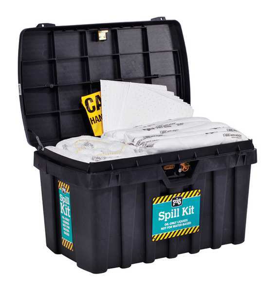 $908.75 / eachWeb priceSpill Kit, Oil-Based Liquids, BlackSKU G7974592CategoriesDescription Spill Kit, Fluids Absorbed Oil-Only, Volume Absorbed Per Kit 44 gal, Container Type Chest, 23 in W x 37 in L x 20 1/2 in H Container Size, Black, Filled, Sorbents Included (100) 20 in L x 15 in W Pig STAT-MAT Oil-Only Absorbent Pad (MAT214), (6) 10 ft L x Ext. dia. 3 in Pig Oil-Only Absorbent Boom (BOM406), (6) 48 in L x Ext. dia. 3 in Pig Skimmer Oil-Only Absorbent Sock (104PS)graingerSKU: 30RE11, mscSKU: , zoro_no: G7974592, mongo_id: 65bbea3b22d7a989a99a2386
