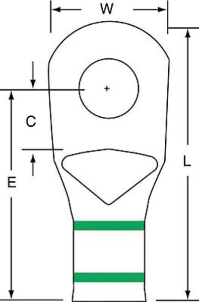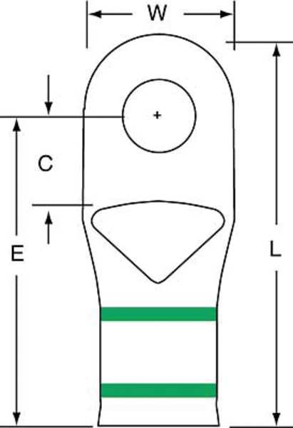 Description One-Hole Lug Compression Connector, Barrel Size Standard, Color Code Green, Die Code 11, Tongue Angle Straight, Tongue Width 0.69 in, For Conductor Material Copper, For Stud Size 5/16 in, For Stranded Copper Wire Size - Maximum 1 AWG, Inspection Hole No, Hole Center to Center Not Applicable, Material Copper, Maximum Voltage 35 kV AC, Termination Style Crimp, Standards CSA Certified, UL Listed, Number of Holes 1, RoHS Compliant Yes, Barrel Inside Diameter 0.35 in, Barrel Outside Diameter 0.46 in