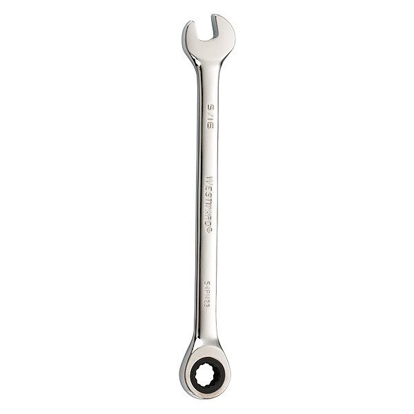 Description Ratcheting Wrench, Alloy Steel, Chrome, Head Size 5/16 in, Overall Length 5 1/2 in, Head Offset Angle 0 Degrees , Opening Angle (Deg.) 15 Degrees , Standard, Head Thickness 1/4 in, SAE, Rounded