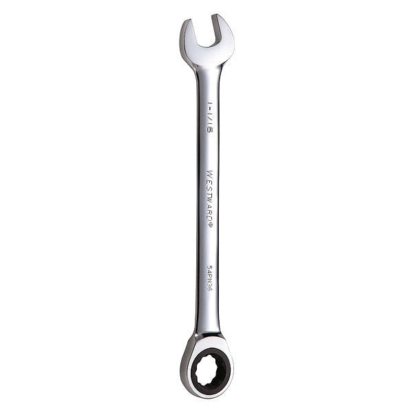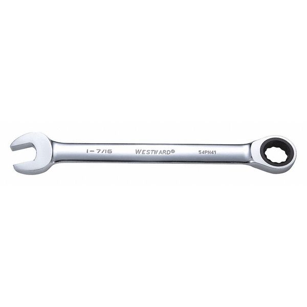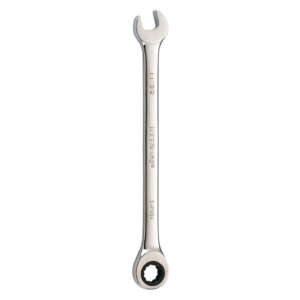 Description Ratcheting Wrench, Alloy Steel, Chrome, Head Size 1 7/16 in, Overall Length 19 5/8 in, Head Offset Angle 0 Degrees , Standard, Head Thickness 13/16 in, SAE, Rounded