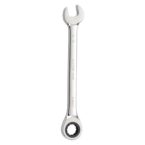 Description Ratcheting Wrench, Alloy Steel, Chrome, Head Size 5/8 in, Overall Length 8 1/8 in, Head Offset Angle 0 Degrees , Standard, Head Thickness 3/8 in, SAE, Rounded
