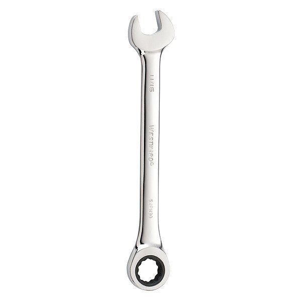 Description Ratcheting Wrench, Alloy Steel, Chrome, Head Size 1 1/16 in, Overall Length 14 in, Head Offset Angle 0 Degrees , Standard, Head Thickness 5/8 in, SAE, Rounded
