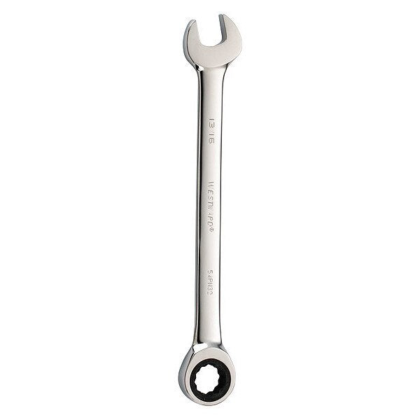 Description Ratcheting Wrench, Alloy Steel, Chrome, Head Size 13/16 in, Overall Length 11 1/2 in, Head Offset Angle 0 Degrees , Standard, Head Thickness 1/2 in, SAE, Rounded