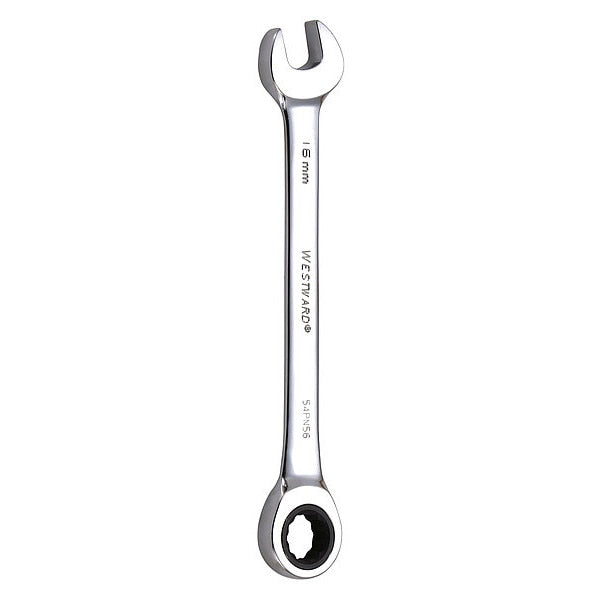 Description Ratcheting Wrench, Alloy Steel, Chrome, Head Size 16 mm, Overall Length 8 1/8 in, Head Offset Angle 0 Degrees , Standard, Head Thickness 3/8 in, Metric, Rounded