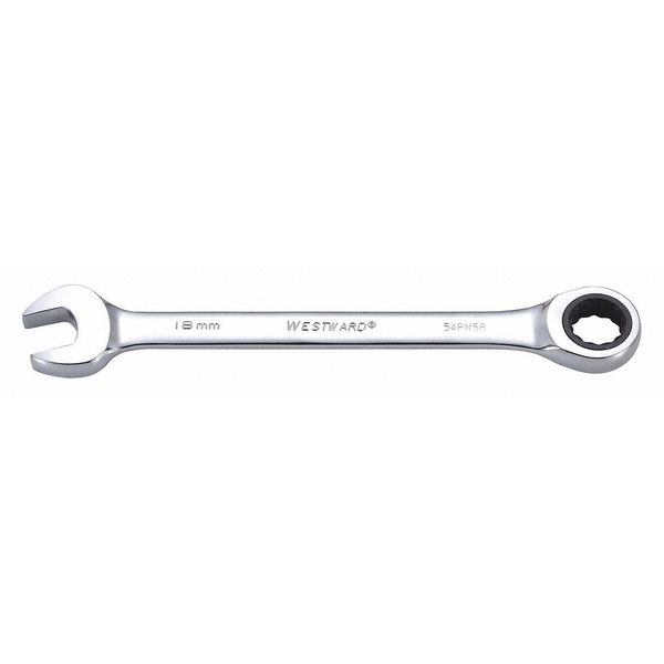 Description Ratcheting Wrench, Alloy Steel, Chrome, Head Size 18 mm, Overall Length 9 1/4 in, Head Offset Angle 0 Degrees , Standard, Head Thickness 1/4 in, Metric, Rounded