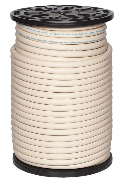 SKU G1276712CategoriesDescription Washdown Hose, Hose Inside Dia. 3/4 in, Hose Outside Dia. 1 5/32 in, Hose Length 500 ft, Hose Color White, Hose Tube Material EPDM, Hose Cover Material EPDM, Max. Working Pressure @ 70 F 300 psi, Temp. Range -40 Degrees to 205 Degrees F, Standards RMA Class B, Safety Factor 4:1, Hose Configuration Bulk Hose, Antimicrobial NograingerSKU: 3DVE4, mscSKU: , zoro_no: G1276712, mongo_id: 65bbe94522d7a989a9943804