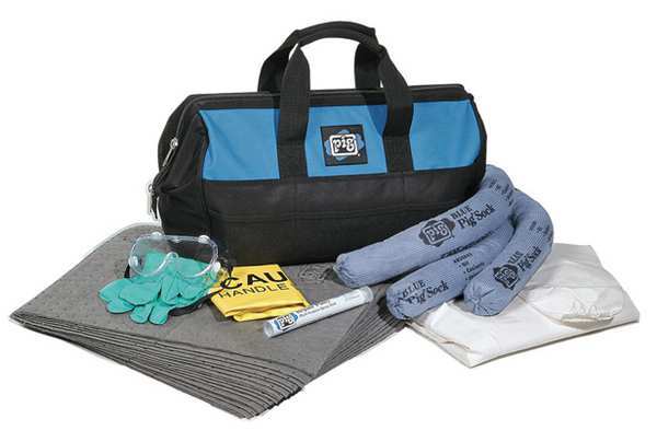 $215.00 / eachWeb priceSpill Kit, Universal, Black/BlueSKU G7845756CategoriesDescription Spill Kit, Fluids Absorbed Universal, Volume Absorbed Per Kit 6 gal, Container Type Portable Bag, 12 in W x 20 in L Container Size, Black, Filled, Sorbents Included (15) 15 in W x 20 in L Mat Pad, (3) 3 in D x 48 in L Sock, PPE Included 13 in L Nitrile Gloves, Economy Goggle, Additional Components Included (5) 18 in W x 30 in H Polyethylene Disposal Bags, 7 in L Pig(TM) Multi-Purpose Epoxy Putty, Duffel Bag, Lockable No, Static Dissipative No, UV Resistant No, Product Weight 11 lb, KITgraingerSKU: 30RD65, mscSKU: , zoro_no: G7845756, mongo_id: 65bbe99f22d7a989a9968ddf