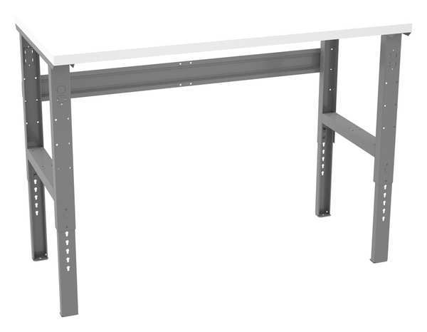 Description Workbench, Height Adjustability Adjustable Height, Top Material Laminate, Assembly Unassembled, Color Gray, Frame Material Steel, Leg Type Straight Leg, Maximum Adjustable Height 41 3/8 in, Minimum Adjustable Height 35 3/8 in, Non-Metal Top Thickness 1 1/2 in, Number of Cabinets 0, Number of Drawers 0, Number of Knockouts 4, Included Components Stringer, Number of Outlets 0, Number of Shelves 0, Overall Depth 30 in, Overall Fixed Height Not Applicable, Overall Load Capacity 1,000 lb