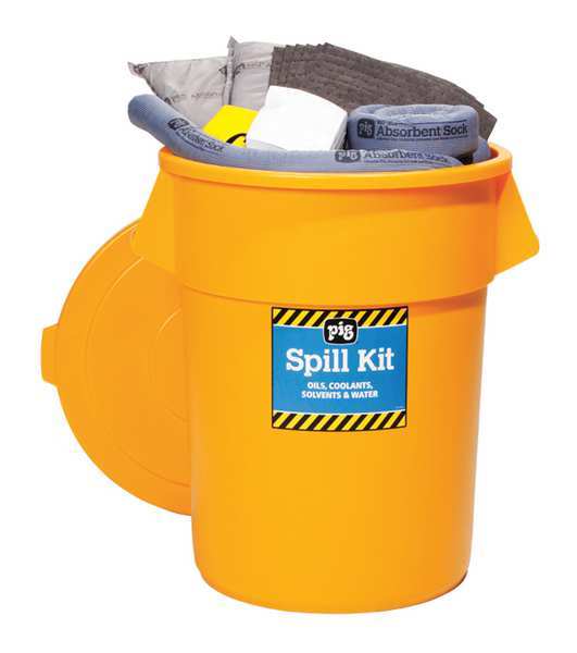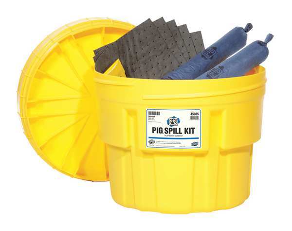 $858.74 / eachWeb priceSpill Kit, Universal, YellowSKU G8319272CategoriesDescription Spill Kit, Fluids Absorbed Universal, Volume Absorbed Per Kit 39 gal, Container Type Can, 55 gal Container Capacity, 26 3/4 in W x 26 3/4 in L x 33 in H Container Size, Yellow, Filled, Sorbents Included (10) 3 in D x 48 in L Sock (4048), (40) 15 in W x 20 in L Mat Pad, (56) 11.8 in W x 13 in L Pig PR40 All-Purpose Wipers (WIP310), (6) 17 in W x 21 in L x 2 in H Pillow, (6) 3 in D x 10 ft L SockgraingerSKU: 30RD49, mscSKU: , zoro_no: G8319272, mongo_id: 65bbe9ec22d7a989a9985945