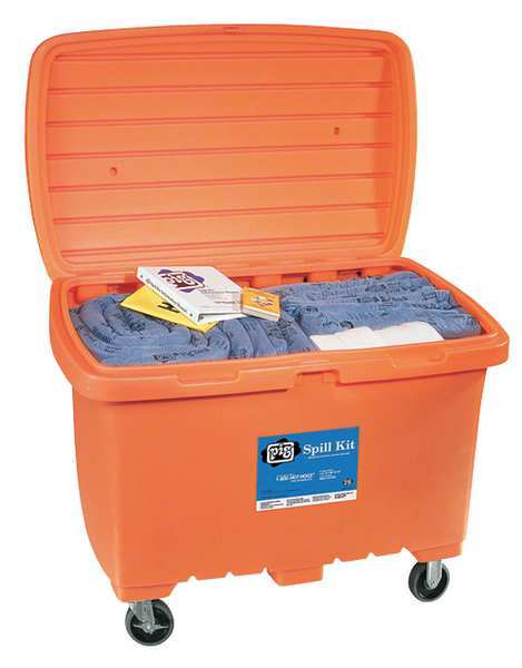 SKU G2224559CategoriesDescription Spill Kit, Fluids Absorbed Universal, Volume Absorbed Per Kit 76 gal, Container Type Chest, 31 in W x 48 in L x 41 1/2 in H Container Size, Orange, Filled, Sorbents Included (10) 3 in D x 10 ft L Sock, (112) 11.8 in W x 13 in L Pig PR40 All-Purpose Wipers, (154) 15 in W x 20 in L Mat Pad, (31) 3 in D x 48 in L SockgraingerSKU: 30RD63, mscSKU: , zoro_no: G2224559, mongo_id: 65bbe7ca9a749db822758c10