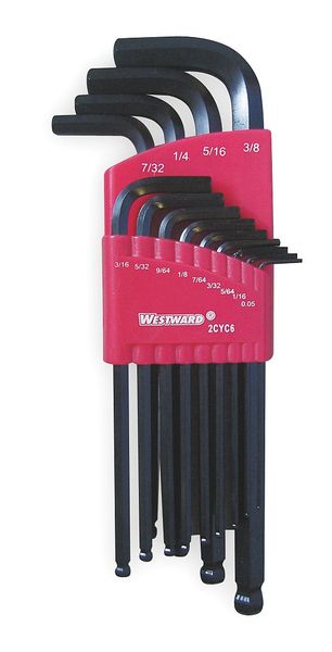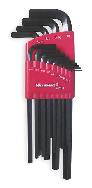 $14.11 / eachWeb price13 Piece SAE L-Shape Hex Key Set, 2CYC3SKU G3159177CategoriesDescription Hex Key Set, Tip Size 0.05 in, 1/16 in, 1/4 in, 1/8 in, 3/16 in, 3/32 in, 3/8 in, 5/16 in, 5/32 in, 5/64 in, 7/32 in, 7/64 in, 9/64 in, Black Oxide, 13, Plastic Holder, Long, Hex, 2, No, 2 3/4 in to 6 27/32 in, No, NograingerSKU: 2CYC3, mscSKU: , zoro_no: G3159177, mongo_id: 65bbe7ae3aaddbd5a90ad1ea
