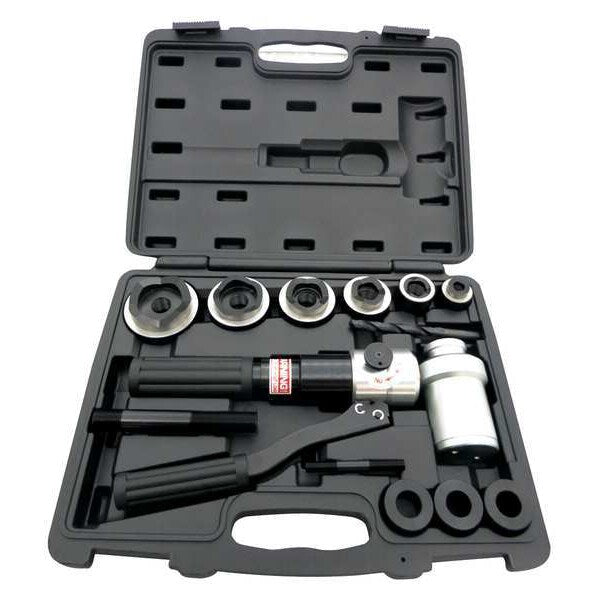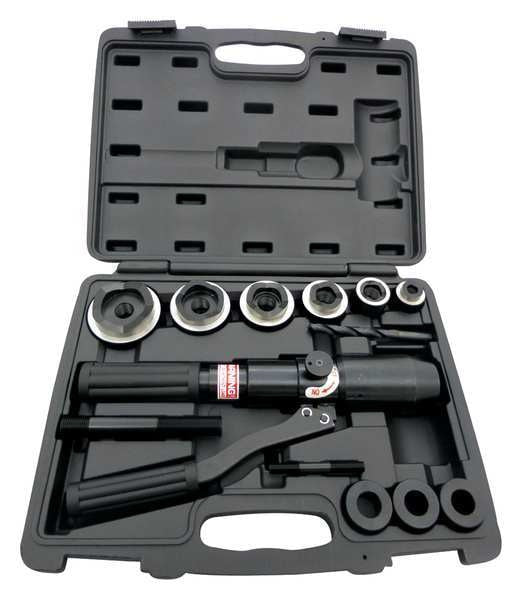 SKU G2004095Categories Lifting and HydraulicsDescription Hydraulic Punch Driver Set, Number of Pieces 13, Capacity 11 ga Steel, Conduit and Pipe Size 1/2 in to 2 in, Workpiece Material Steel, Includes (6) Hydraulic Punch Dies, (3) Adaptors, (2) Power Screws, Drill Bit, Carrying CasegraingerSKU: 39CE93, mscSKU: , zoro_no: G2004095, mongo_id: 65bbe9bf22d7a989a997570b