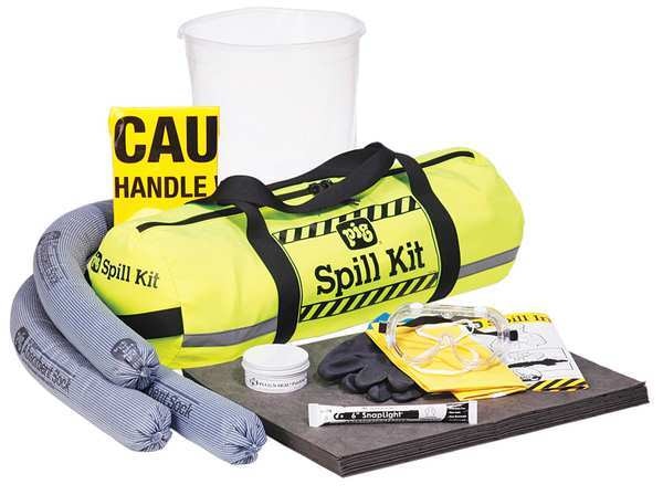 SKU G0469519Categories Material HandlingDescription Spill Kit/Station, Fluids Absorbed Universal, Specialized Applications Truck, Volume Absorbed Per Kit 4 gal, Container Type Portable Bag, 9 in W x 26 in L x 9 in H Container Size, High-Visibility Yellow, Filled, Sorbents Included (15) 15 in W x 20 in L Absorbent Mat Pad, (3) 3 in D x 48 in L Absorbent Socks, PPE Included Apron, Economy Goggle (GLS290-AF), Neoprene GlovegraingerSKU: 35XA14, mscSKU: , zoro_no: G0469519, mongo_id: 65bbea6522d7a989a99b08da