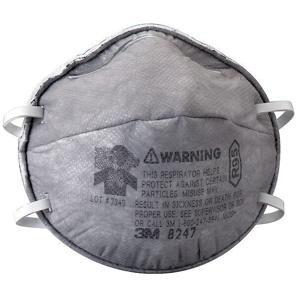 R95 Disposable White Particulate Respirator 20pk.SKU G3047326CategoriesDescription Disposable Respirator, Mask Size M, NIOSH Rating Nuisance Organic Vapor, R95, ASTM Splash Rating Not Rated, ISO Cleanroom Class Not Rated, Mask Headstrap Type Dual, Non-Adjustable, Mask Shape Molded, Mask Material Polyester, Exhalation Valve No, Package Quantity 20graingerSKU: 4JG02, mscSKU: , zoro_no: G3047326, mongo_id: 65bbe9ba22d7a989a9971f87
