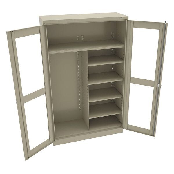 SKU G9843443CategoriesDescription Storage Cabinet, Base Type Leveling, Body Panel Type Solid, Cabinet Color Sand, Cabinet Material Steel, Cabinet Storage Components Hanging Rods, Shelves, Door Handle Type Swing, Door Type Clearview, Duty Rating Medium Duty, For Use Indoors/Outdoors No, Frame Assembled Assembled, Load Capacity per Shelf 400 lb, Lock Type Keyed, Mobility Stationary, Mounting Location Freestanding, Number of Shelves 5, Overall Depth 18 in, Overall Height 78 in, Overall Width 48 in, Audit Trail Storage NonegraingerSKU: 8YEM4, mscSKU: , zoro_no: G9843443, mongo_id: 65bbe69e3aaddbd5a903f58c