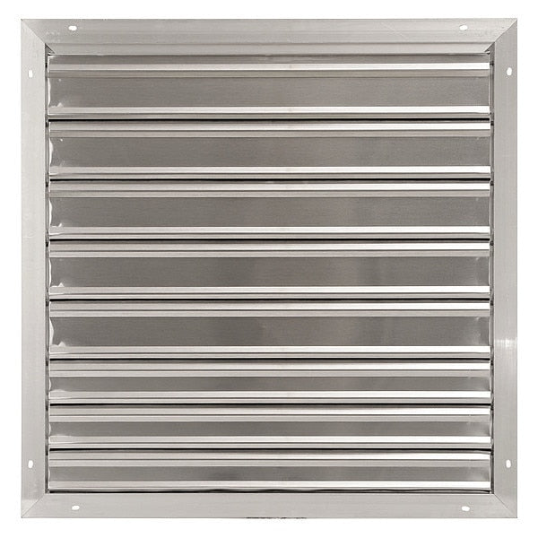 Description 32 In.H-W Alu Universal Backdraft Dampr, Frame Material Aluminum, Number of Panels 1, Maximum Air Velocity 2250 fpm, Overall Height 32 in, Rough Opening Shape Square, Fits Fan Diameter 30 in, Free Area 4.7 sq ft, Overall Width 32 in, Frame Material Thickness 0.1 ga, Frame Depth 1 5/8 in, Rough Opening Length 30 in, Maximum Pressure 1 in wc, Rough Opening Width 30 in, Blade Material Aluminum, Single Acting/Double Acting Single Acting, Closure Type Spring, Flange Width 1 3/8 in