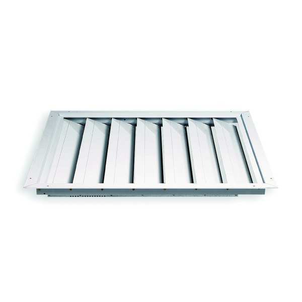 Description 35 7/8 In.H-W Aluminum Ceiling Truss Damper, Frame Material Aluminum, Number of Panels 1, Maximum Air Velocity 1500 fpm, Overall Height 30 3/4 in, Rough Opening Shape Rectangular, Fits Fan Diameter 30 in, Free Area 5.4 sq ft, Overall Width 35 7/8 in, Frame Material Thickness 0.1 in, Frame Depth 1 5/8 in, Rough Opening Length 28 3/4 in, Maximum Pressure 1 in wc, Rough Opening Width 33.9 in, Blade Material Aluminum, Closure Type Gravity, Flange Width 1 5/8 in