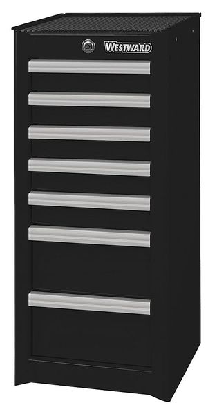 Description Side Cabinet, Side Cabinet, Duty Rating Light Duty, Number of Drawers 7, Overall Depth 18 in, Overall Height 33 7/8 in, Overall Width 15 1/2 in, Drawer Slide Type Ball Bearing, Body Color Black, Body Finish Powder Coated, Body Gauge 21 ga, Body Material Steel, Drawer Color Black, Drawer Finish Powder Coated, Drawer Gauge 22 ga, Drawer Material Steel, Compatible with Grainger Part Number 32H853; 32H856; 32H892, Compatible with Manufacturer Model No. AT182071G-03, Drawer Liner Material EVA