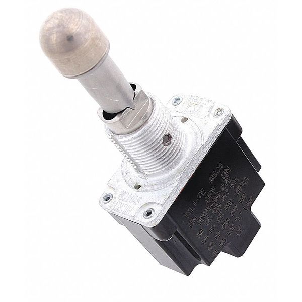 SKU G4718725CategoriesDescription Toggle Switch, Contact Form SPDT, Number of Connections 3, Switch Function On/On, AC Contact Rating 15A @ 277V AC, HP 1 hp, Terminals Screw, Mounting Hole 0.50 in dia, DC Contact Rating 20A @ 28V DC, Actuator Style Standard Lever, Actuator Length 0.68 in, Stem Length 0.47 in, Stem Dia. and Thread Size 0.470 in, Operating Temp. Range -85 Degrees to 160 Degrees F, Actuator Color Silver, Stem Color Silver, Special Features Silver Cadmium Oxide Contacts, Standards UL/CSA and Military QualificationgraingerSKU: , mscSKU: , zoro_no: G4718725, mongo_id: 65bbe85f22d7a989a98f001a