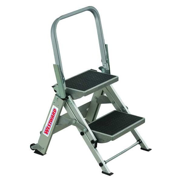 $312.49 / eachWeb price2 Steps, Aluminum Step Stool, 300 lb. Load Capacity, SilverSKU G0462561CategoriesDescription Step Stool Product Group Folding Step, Number of Steps 2, Overall Height 18 in, Material Aluminum, ANSI Type IA, Load Capacity 300 lb, Top Step Height 17 in, Bottom Width 21 in, Base Depth 23 in, Color Silver, Series WW-2011, Closed Depth 5 19/64 in, Closed Height 32 1/2 in, Net Weight 17.6 lbgraingerSKU: 44YY25, mscSKU: , zoro_no: G0462561, mongo_id: 65bbe6b23aaddbd5a90499bd