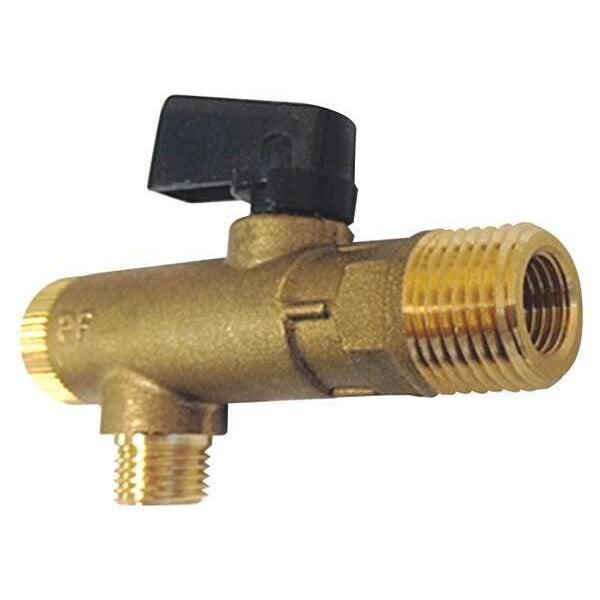 Description Filter Ball Valve, Inlet Port Size 1/2 in Male and 1/4 in Female, Drain Port Size 3/8 in NPT, Valve Max. Pressure Rating 725 psi, Body Material Brass, Seal Material NBR, Seat Material PTFE, Handle Material ABS, Handle Type Lever, Stem Material Brass, Overall Width 1 in, Overall Height 2 1/4 in, Overall Length 3 1/4 in, Filter Ball Valve
