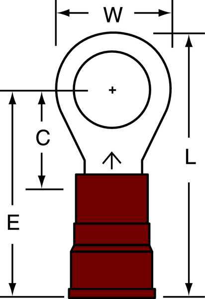 Description Ring Terminal, Insulation Color Red, Maximum Operating Temperature 221 Degrees F, Maximum Voltage 600 V, Minimum Wire Size 22 AWG, Maximum Wire Size 18 AWG, Termination Style Crimp, Tongue Width 0.25 in, Contact Material Copper, Standards CSA Certified, UL Listed, Overall Length 0.8 in, Package Quantity 100