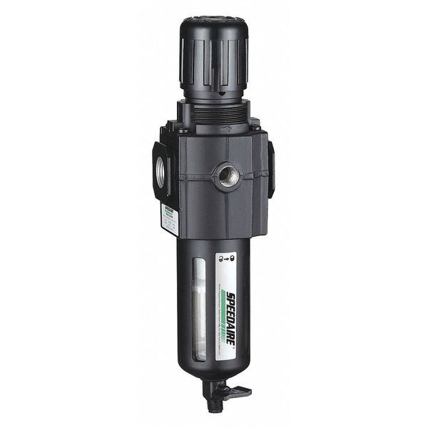 SKU G3003472CategoriesDescription Filter-Regulator, Filter Bowl Material Polycarbonate with Guard, Air Inlet Size 1/4 in, Air Inlet Type NPT, Maximum Flow Rate 80 cfm, Filter Rating 40 micron, Filter Type Particulate, Maximum Operating Pressure 150 psi, Drain Type Manual, Pressure Gauge Included No, Body Material Zinc, Overall Width 2 in, Series Compact, Adjustment Location Top, Adjustment Mechanism Knob, Adjustment Mechanism Material Reinforced Nylon, Air Flow Direction Left to Right, Air Inlet Gender FemalegraingerSKU: 4ZK83, mscSKU: , zoro_no: G3003472, mongo_id: 65bbe8219a749db8227763cf