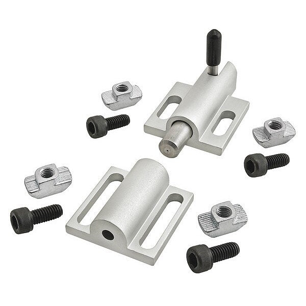 Description Deadbolt Latch, 10 Series, 15 Series, Inch, Overall Height 2 1/2 in, Overall Length 1 1/2 in, Overall Width 1 1/2 in, Aluminum 6105-T5, Anodized, Silver, Single, Number of Mounting Holes 4, Includes Fasteners Yes, Single Nut, Fastener Thread Size M5, Fastener Thread Length 3/64 in, Deadbolt, Includes Pin, Spring, Stainless Steel Bolt, Compatible Brand and Series 80/20, 10 Series, 80/20, 15 Series