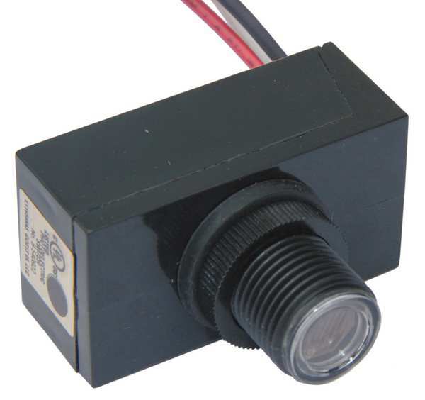 Description Photocontrol, Mounting 3/8 in Male Pipe Threaded, Voltage 208 to 277V AC, Max. Wattage 2,000, Max. Incandescent Amps 7.5 A, Max. Ballast Amps 7.5 A, 10.0 to 20.0 Foot Candles On, 30 to 60 Foot Candles Off, Color Black, Temp. Range -40 Degrees to 158 Degrees F, Length 2 1/8 in, Width 1 5/8 in, Depth 1 1/8 in, Enclosure Type Raintight, Contact Form SPST, Housing Material Polycarbonate, Setting Dusk to Dawn, Standards UL, Includes Lock Nut, Washer Gasket