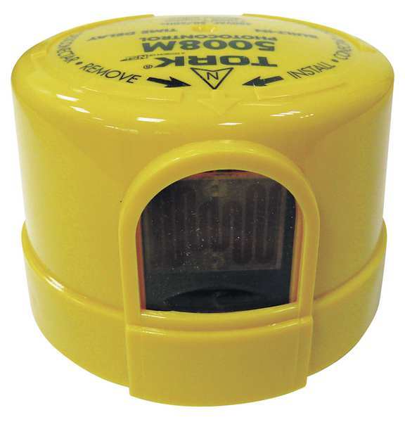Description Photocontrol, Mounting Turn-Lock, Voltage 480V AC, Max. Wattage 1,800, Max. Incandescent Amps 15 A, Max. Ballast Amps 15 A, 10.0 to 20.0 Foot Candles On, 30 to 60 Foot Candles Off, Color Yellow, Temp. Range -40 Degrees to 158 Degrees F, Length 3 3/8 in, Width 3 3/8 in, Depth 2 3/8 in, Enclosure Type Raintight, Contact Form SPST, Housing Material Polycarbonate, Setting Dusk to Dawn