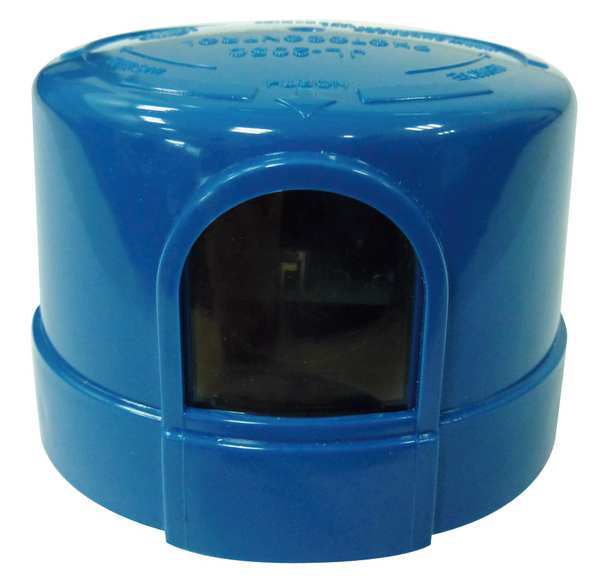 Description Photocontrol, Mounting Turn-Lock, Voltage 120 to 277V AC, Max. Wattage 1,000, Max. Incandescent Amps 8.3 A, Max. Ballast Amps 15 A, 10.0 to 20.0 Foot Candles On, 30 to 60 Foot Candles Off, Color Blue, Temp. Range -40 Degrees to 158 Degrees F, Length 3 1/5 in, Width 3 3/8 in, Depth 2 3/8 in, Enclosure Type Raintight, Contact Form SPST, Housing Material Polycarbonate, Setting Dusk to Dawn, Standards CETLU