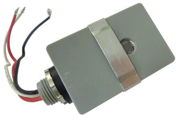 Description Photocontrol, Mounting 1/2 in Male Pipe Thread, Voltage 208 to 277V AC, Max. Wattage 2,000, Max. Incandescent Amps 7.2 A, Max. Ballast Amps 7.2 A, 10.0 to 20.0 Foot Candles On, 30 to 60 Foot Candles Off, Color Gray, Temp. Range -40 Degrees to 158 Degrees F, Length 3 in, Width 2 in, Depth 1 1/2 in, Enclosure Type Raintight, Contact Form SPST, Housing Material Polycarbonate, Setting Dusk to Dawn, Standards UL, Includes Lock Nut, Washer Gasket