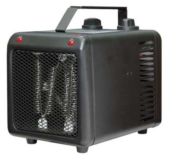 SKU G0600451Categories Electric and Cordless ToolsDescription Portable Electric Jobsite & Garage Heater, NEMA Plug Configuration 5-15P, Overall Height 16 in, Overall Length 16 in, Overall Depth 8 in, Overall Width 10 in, Voltage 120V AC, 1 Phase, Wattage Output 1.3kW/1.5kW, Air Temp. Rise 170 Degrees F, Housing Finish Powder Coated, Housing Color Gray, White, Housing Material Steel, Heating Method Fan Forced, Heating Capacity 4436/5118 BtuH, Amperage 10.8A/12.5A, Air Flow 100 cfm, Frequency 60 Hz, Thermal Overheat Protection Manual ResetgraingerSKU: 3VU33, mscSKU: , zoro_no: G0600451, mongo_id: 65bbee24526e052139af05a8