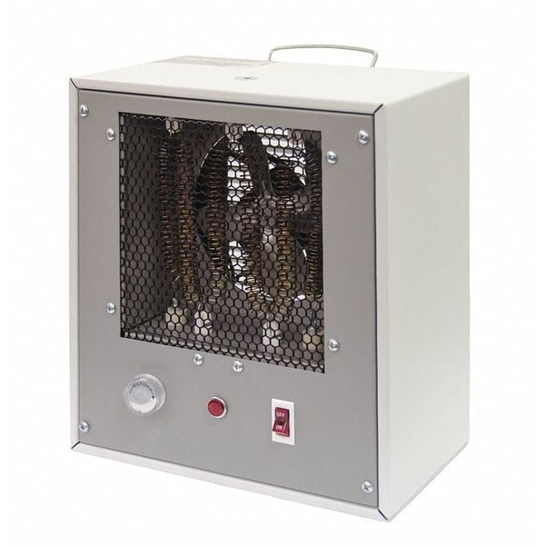 SKU G1685896Categories Electric and Cordless ToolsDescription Portable Electric Jobsite & Garage Heater, NEMA Plug Configuration 6-30P, Overall Height 14 in, Overall Length 14 in, Overall Depth 10 3/4 in, Overall Width 10 3/4 in, Voltage 208/240V AC, 1 Phase, Wattage Output 3kW/4kW, Air Temp. Rise 85 Degrees F, Housing Finish Powder Coated, Housing Color Red, Housing Material Steel, Heating Method Fan Forced, Heating Capacity 10,236/13,650 BtuH, Amperage 14.4A/16.7A, Air Flow 300 cfm, Frequency 60 Hz, Thermal Overheat Protection Automatic ResetgraingerSKU: 3VU34, mscSKU: , zoro_no: G1685896, mongo_id: 65bbe93c22d7a989a9941526