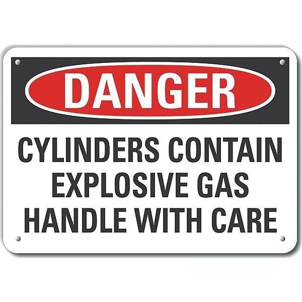 Plastic Cylinder Handling Danger Sign, 7 in H, 10 in W, Vertical Rectangle, LCU4-0631-NP_10X7